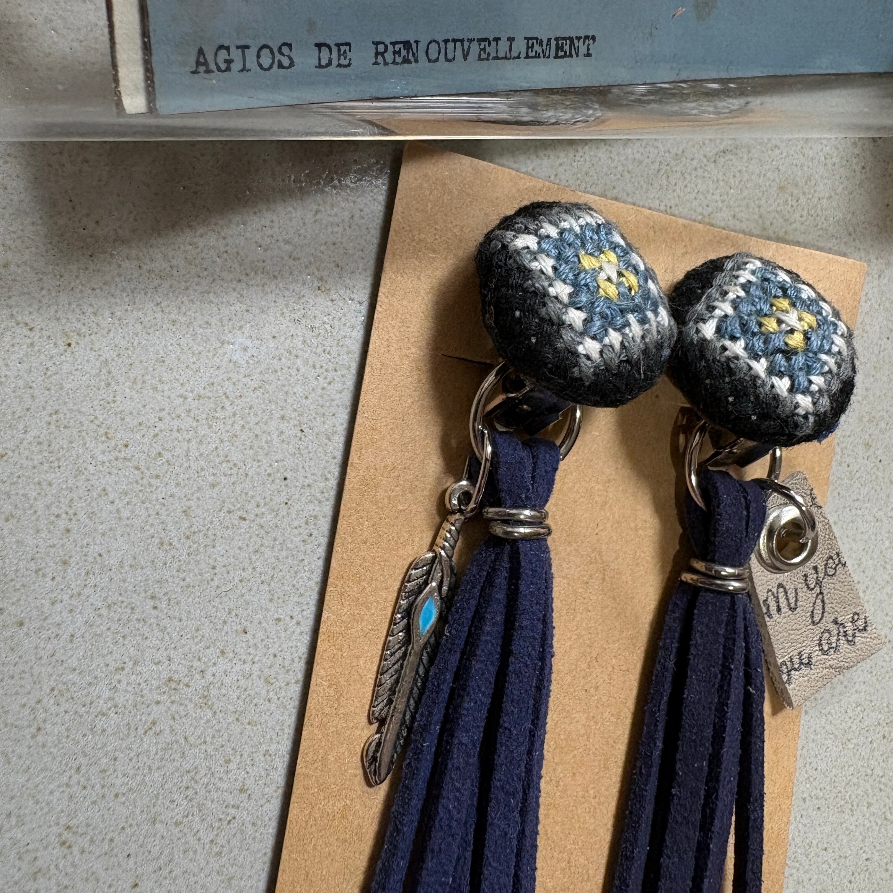 スエードのタッセルに片方はネイティブアメリカンといえばなフェザー(羽)を。